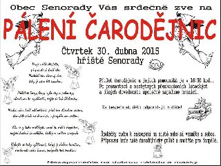 Srdečně zveme rodiče a děti na "Pálení čarodejnic" které se uskuteční 30. dubna od 16:30 na hřišti v Senoradech....