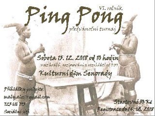 Sobota 15. 12. 2018 od 10 hodin Kulturní dům Senorady Sraz účastníků, rozlosování a rozehřátí půl hodiny předem. Přihlášky posílejte: maly.ales@gmail.com 723 616 795 nebo sociální sítě Startovné 50 Kč Registrace do 14. 12. 2018...
