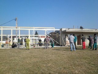 Fotografie ze stavby přístřešku u fotbalového hřiště TJ Sokol Senorady. Harmonogram prací: 21.2.2011 (pondělí) – montáž chemických kotev 24.2.2011 (čtvrtek) – přeložení kabelu, přemístění buněk a odstranění betonového sloupu 25.2.2011 (pátek) – dovoz materiálu na hřiště 26.-27.2.2011 (sobota, neděle) – vlastní stavba kostry přístřešku 19.3.-20.3.2011 (sobota, neděle) – pokládka k...