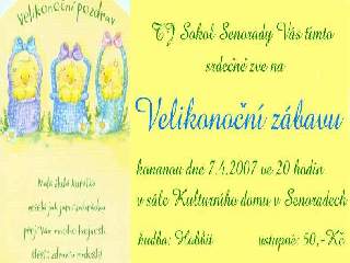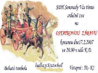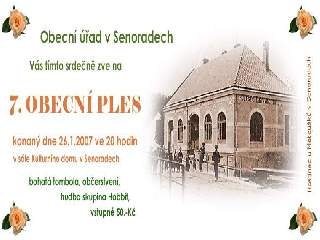Zveme tímto všechny občany na 7.obecní ples, který se bude konat dne 26.1.2007 ve 20 hodin v kulturním domě Senorady. Čeká Vás bohatá tombola, občerstvení a hudební skupina Hobbit.....