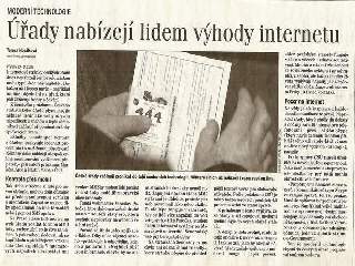 V pondělí 24.září 2007 vyšel v Hospodářských novinách článek o službách, které úřady poskytují občanům pomocí Internetu. V článku je popsána situaci ve městě Děčíně, v Praze a v Senoradech: ...