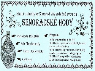 Dobrovolný sbor hasičů Senorady pořádá tradiční senoradskou pouť: Předpouťová zábava se uskuteční v pátek 14.8.2009 od 20:00 v sále kulturního domu Senorady. Pouťová mše svatá začne v neděli 16.8.2009 v 11 hodin v kulturním domě Senorady. V neděli od 14 hodin proběhne hlavní pouťová zábava u penzionu Senorady. ...